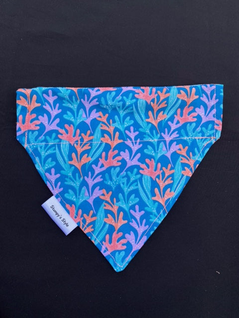 This bandana has a coral reef on a blue background on one side and a coral colour checked pattern on the other side!